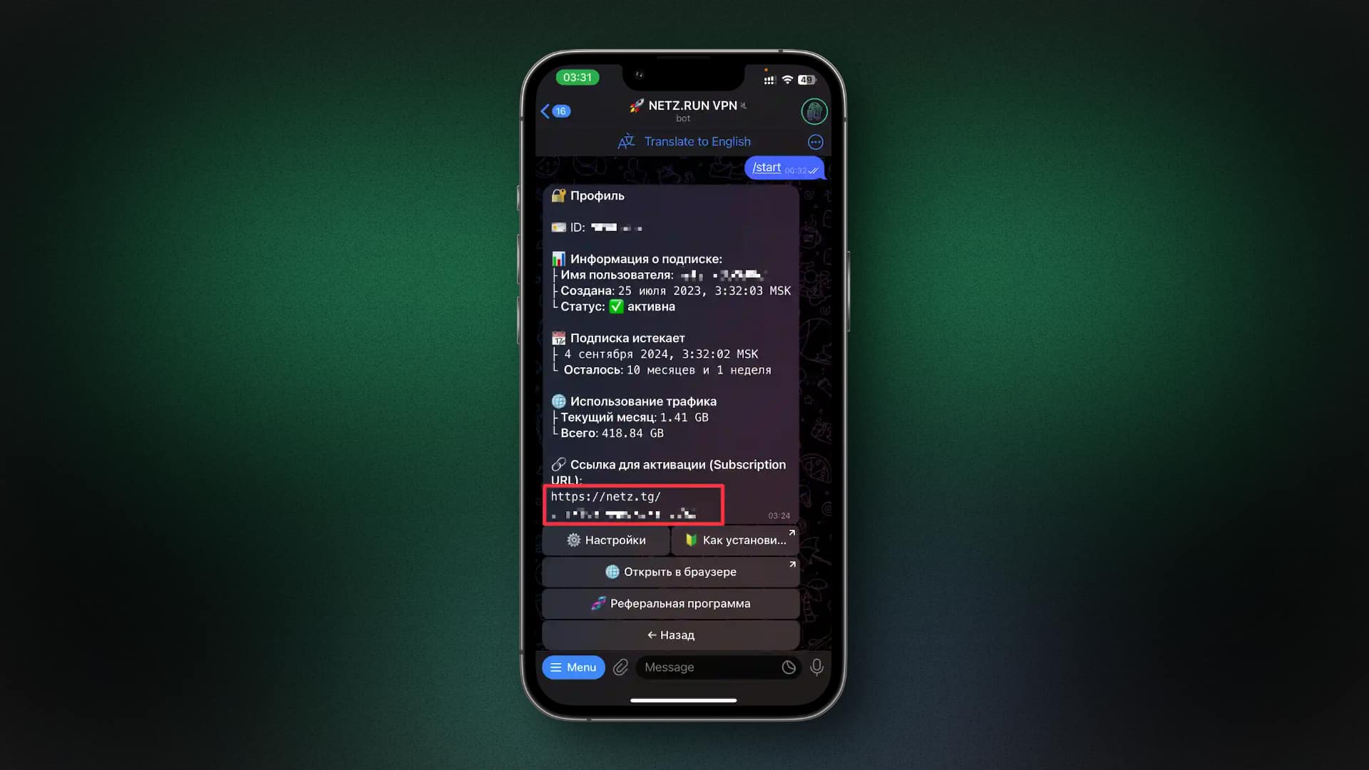 Вместо этого шага вы можете в боте, в разделе Профиль нажать на кнопку "Открыть в браузере", затем пролистайте в самый низ и нажмите на Добавить в ClashX Pro