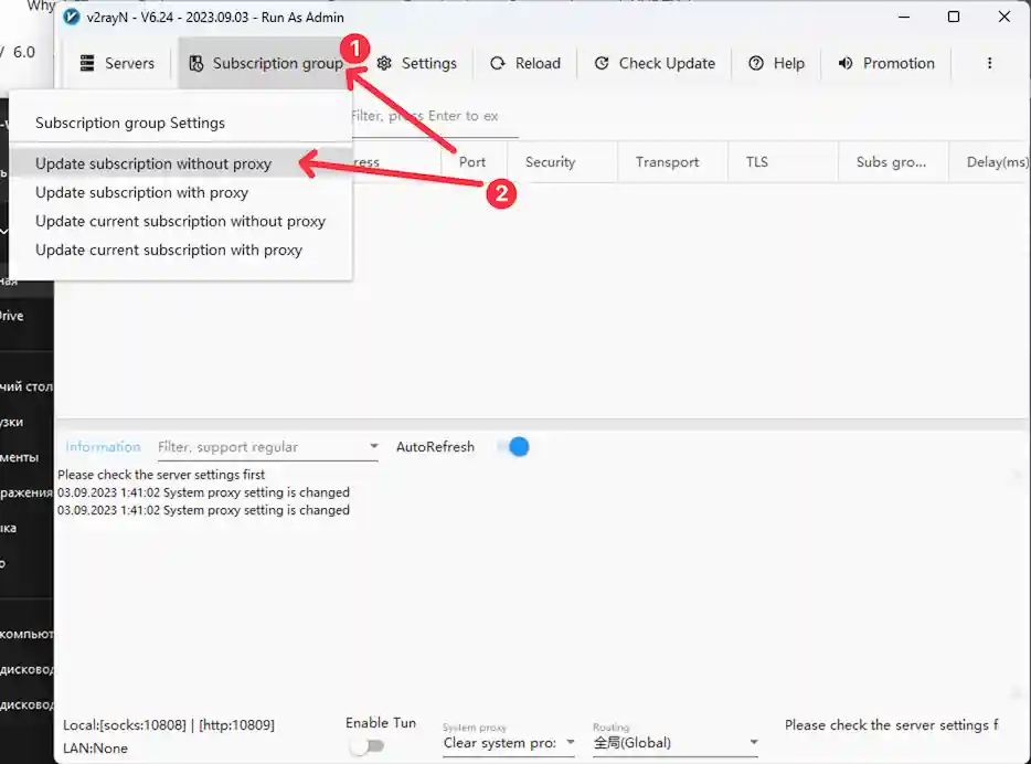 To disable VPN, turn off the Enable TUN switch at the bottom of the program.