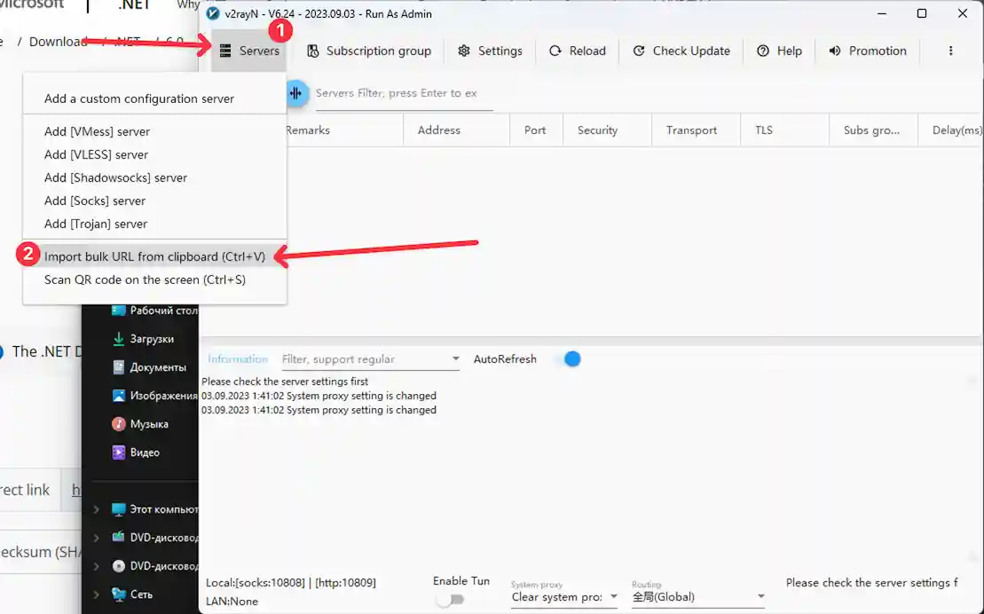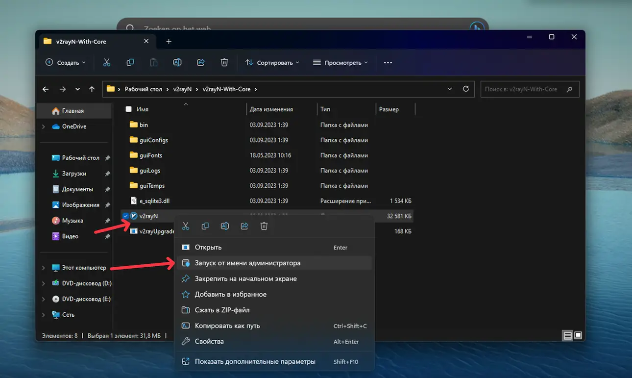 После этого попробуйте запустить v2rayN.exe заного от имени администратора.